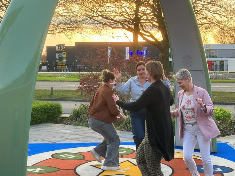 De ca 40 aanwezigen bij de jaarlijkse ledenvergadering voelden zich weer even kind. Voorafgaand aan het officiële gedeelte konden ze gebruik maken van de speeltoestellen bij Lappset.